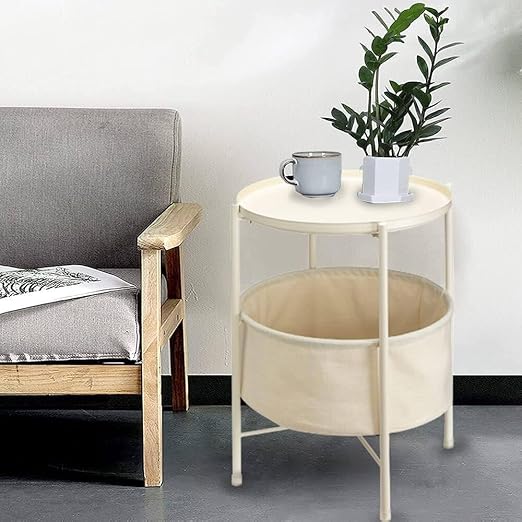 Ana Sayfa Bahçe Çim ve Bitki Bakımı Kahve Yuvarlak Masa, Metal Komidin, Kanepe Yan Sehpa, Çıkarılabilir Tepsi Üstü ve kumaş Depolama Sepeti ile Başucu Sehpası, Yuvarlak Depolama Sehpası, Yatak Odası Oturma Odası ve Ofis için