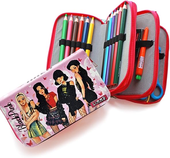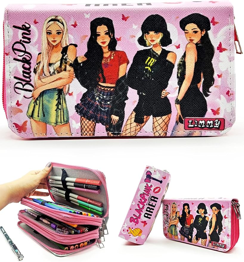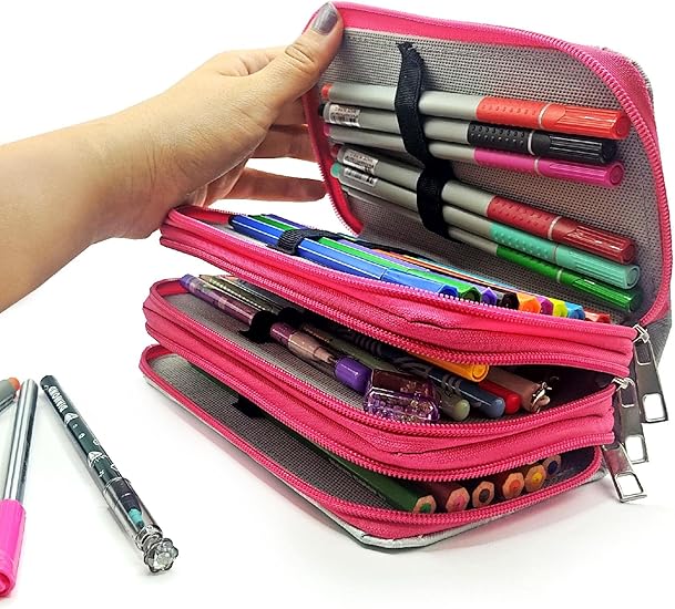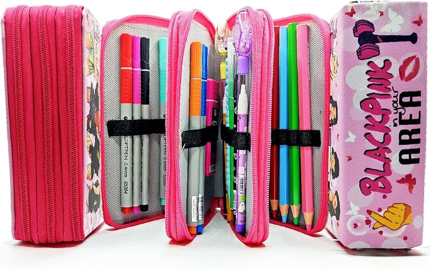 Kalem Kutusu Black Pink Organizer Kalemkutu Vegan Deri Üç Bölmeli Kalemlik-Pembe