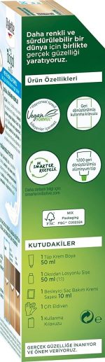 Doğal içeriklerle zenginleştirilmiş yeni formülü sayesinde doğal görünen renk sonuçları sağlar; argan yağı ile zenginleştirilmiş bakım maskesi boyama sonrası saçı besleyerek saçta yoğun parlaklık ve mukemmel yumuşaklık sağlar