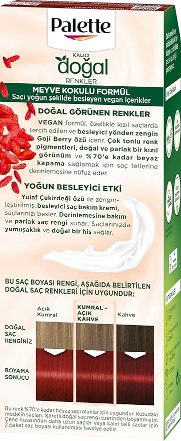Bakım: Palette Kalıcı Doğal Renkler Saç Boyası da saçları korumaya yardımcı olacak bazı bileşenler içerebilir