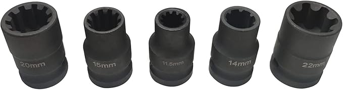Fren kaliperi soketi 7pt içerir. X 14mm, 7pt. X 22mm, 10pt. X 11,5 mm, 10pt. X 15mm ve 10pt. X 20mm.