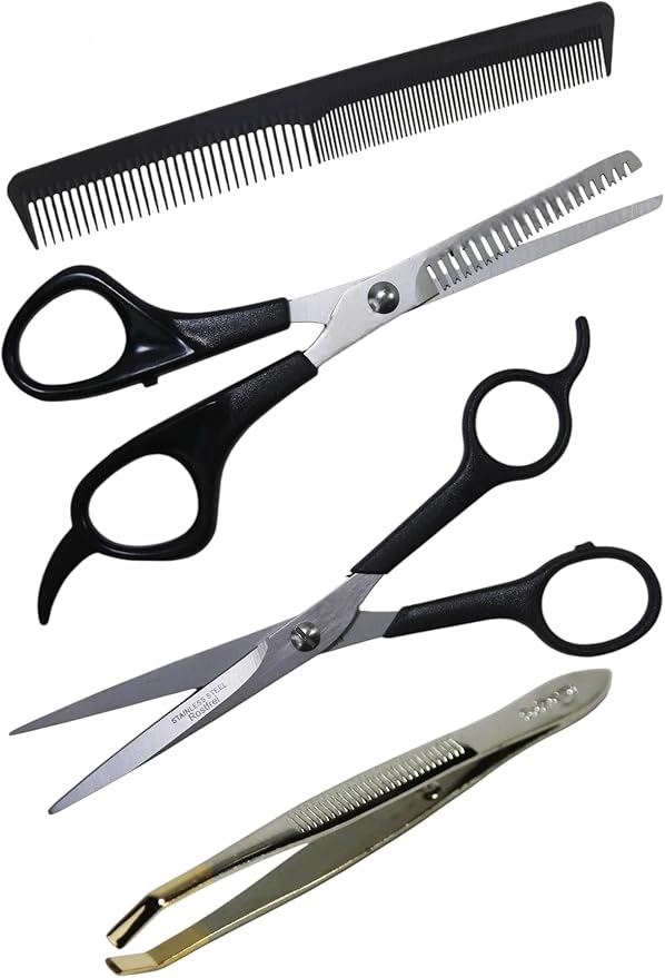 Ana Sayfa Kişisel Bakım ve Kozmetik Saç Bakımı Saç Kesim Aletleri Kalite Berber Kuaför Seti Ara Makası + Cımbız + Berber Tarağı