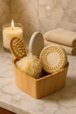 Kalp Şeklinde Ahşap Organizerli Banyo Seti, Doğal Lifli Banyo Süngeri, Yumuşak Köpük Lif ve Ponza Taşı, Masaj Taraklı Spa Bakım Seti, Günlük Duş ve Cilt Bakımı İçin