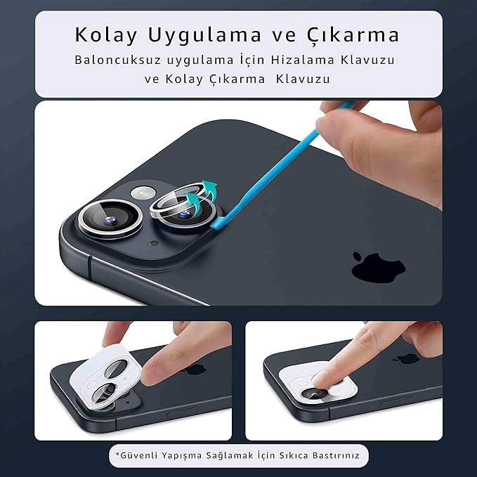 Güçlü Yapışkan – İz Bırakmaz: Kaliteli yapışkan katmanı sayesinde lens yerinden oynamaz; çıkarıldığında telefon yüzeyinde iz bırakmaz.