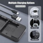 【Yüksek Kaliteli Pil Şarj Cihazı】 Pil şarj cihazı, aynı anda 2 adet pili şarj etmek için 2 yuvaya sahiptir ve daha fazla rahatlık için mikro USB şarj bağlantı noktalarıyla donatılmıştır.