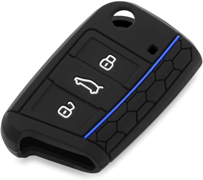 Kamiq ile Uyumlu Siyah Mavi Çizgili Silikon Anahtar Kabı Kılıfı
