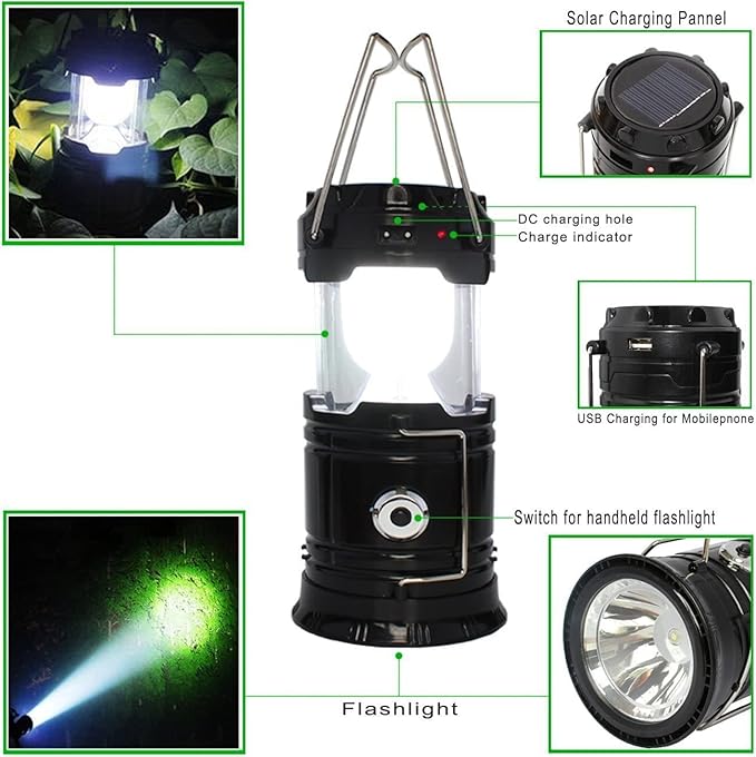 Kamp Lambası, Solar Kamp Fener, El Feneri, El Lambası, Çadır Lambası, USB İle Şarj Edilebilir, Dış Mekan, Yürüyüş, Acil Durum, Kamp Feneri, Taşınabilir Şarj Cihazı (Siyah)
