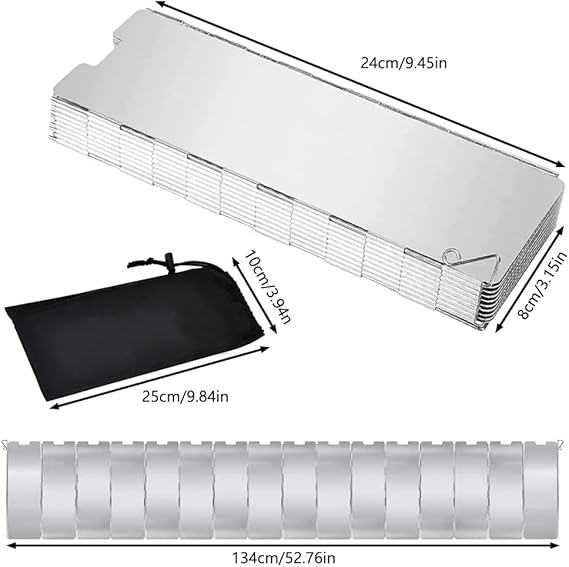 【Kullanımı Kolay】Katlanabilir tasarıma sahip 16 plakalı kamp ocağı ön camı, kompakt ve taşıması kolay, monte edilmiş katlanmamış boyut 134*24 cm/52,76*9,45 inç, kolay saklama için saklama çantası ile.