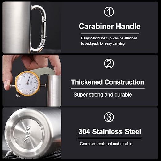 Karabina tutacağı, kupayı sırt çantanıza taşıması kolay bir şekilde takmanıza olanak tanır.