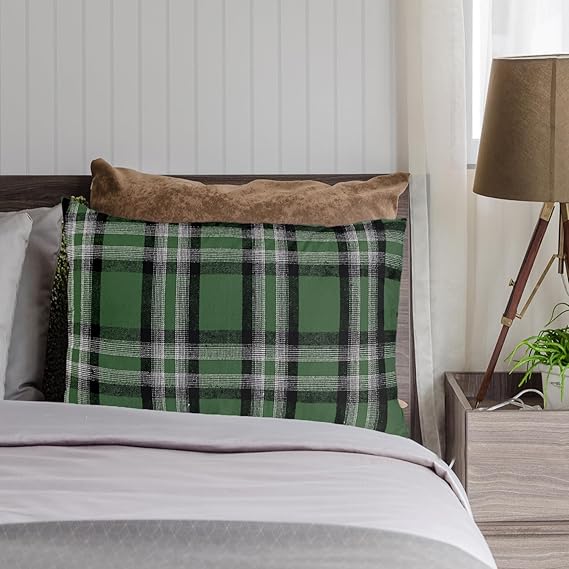 Kamp Yastığı, Seyahat Yastığı, Silikon Elyaf Dolgulu Hafif Küçük Yastık, Orta Sertlikte, Nefes Alabilir Kılıf, Kamp, Uçak ve Araba Yolculuk İçin İdeal 30x45cm Flanel Yeşil