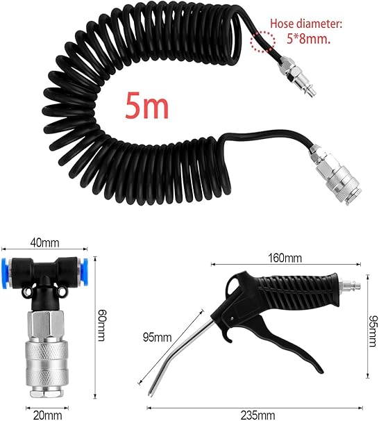 Kompakt Tasarım: 5 metre uzunluğundaki esnek hava hortumu ve tabancası ile dar alanlarda bile kullanım kolaylığı sağlar.