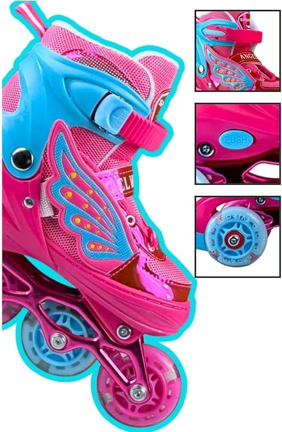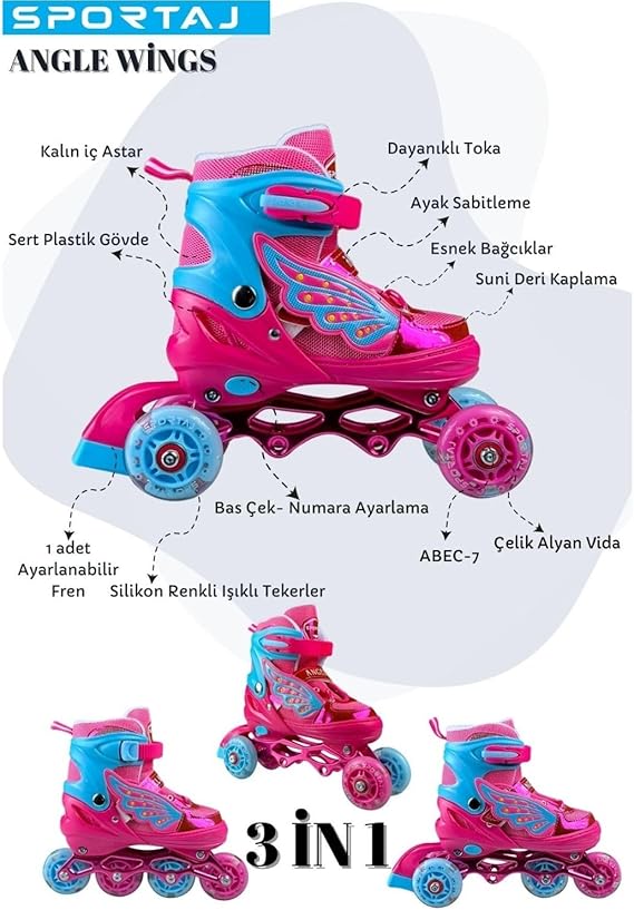 Kanatlı Işıklı Inline Paten Kız Çocuk Pateni Silikon Teker