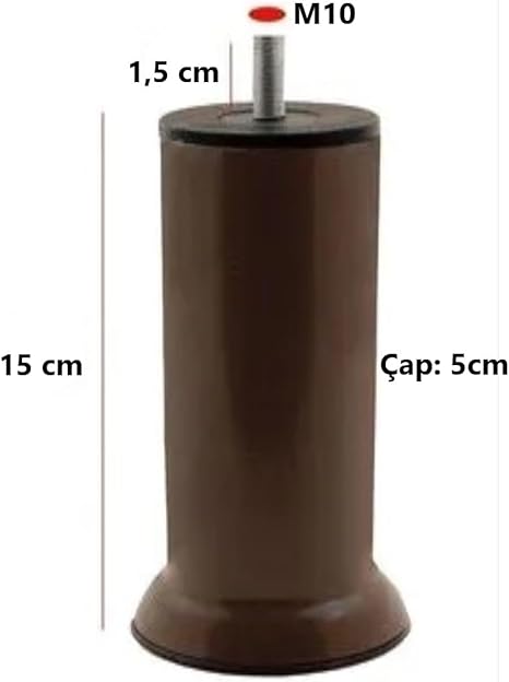 Kanepe Baza Koltuk Çekyat Yükseltme Ayağı Kalın Diş M10 kahverengi Plastik 15 Cm 4 Adet