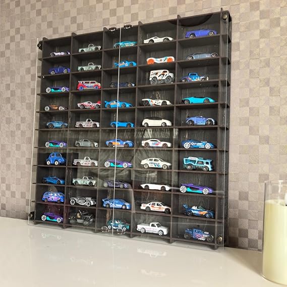 Kapaklı 1/64 Ölçek 50Araç Hotwheels Matchbox metal araç Uyumlu Model Oyuncak Araba Rafı-Eskitme Siyah