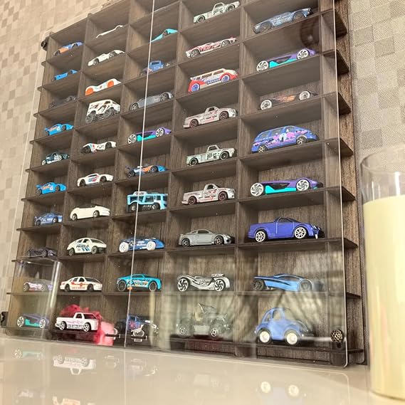 Kapaklı 1/64 Ölçek 50Araç Hotwheels Matchbox metal araç Uyumlu Model Oyuncak Araba Rafı-Kahve