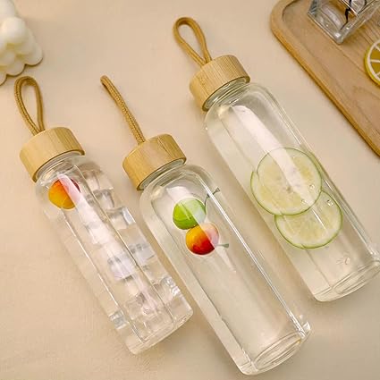 Kapaklı Borosilikat Cam Matara – Sızdırmaz Su Şişesi, Taşıma İpli Suluk,Buz Dolabı İçin,Ofis Ve Evde Kullanıma Uygun (500 Ml)