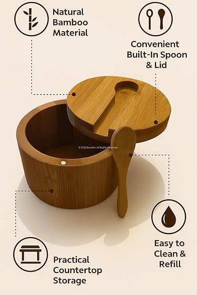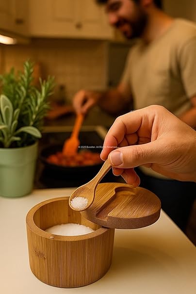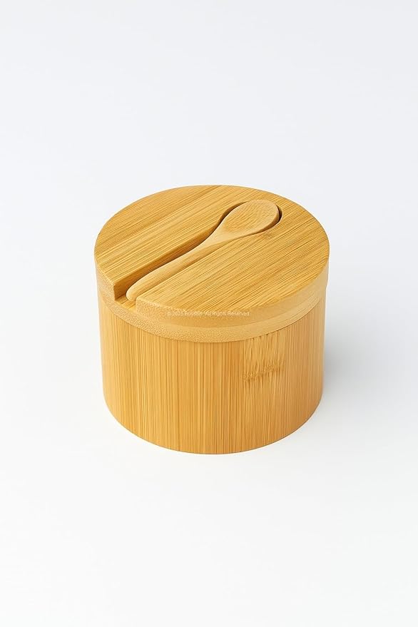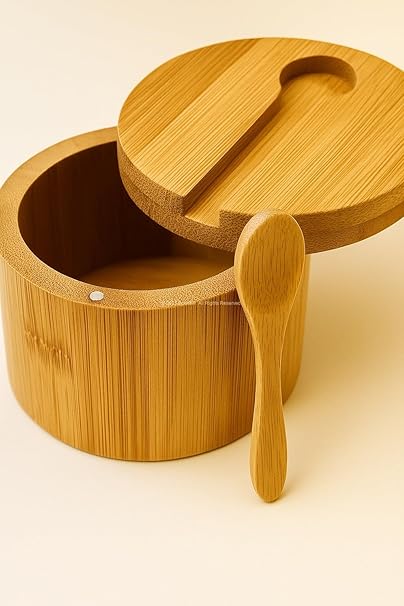 Kapaklı Kaşıklı Ahşap Baharatlık Doğal Ahşap Baharat Kabı Kaşık ve Kapaklı Tasarım Mutfak Tezgahı İçin Şık Pratik Tuz Şeker Saklama Kutusu Baharat Organizer