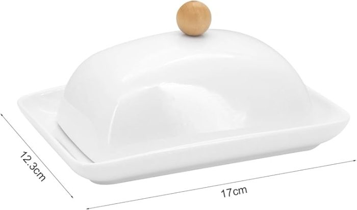 Kapaklı ve bıçaklı tereyağı kabı, kulplu seramik tereyağı kabı, porselen tereyağı kutusu, tereyağı kasesi, 250 g tereyağı için