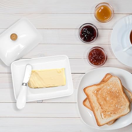 【Malzeme】Seramik tereyağı kutumuz sağlam ve uzun ömürlü yüksek kaliteli seramik malzemeden yapılmıştır. Bu nedenle seramik tereyağı kutusu kahvaltı için mükemmeldir.