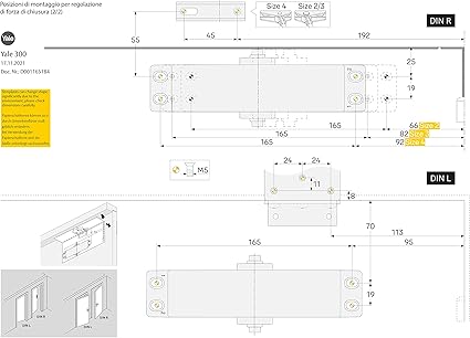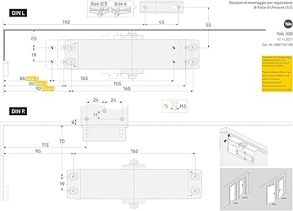 Montaj ayarlı dar tip 2-4 numara kapı hidroliği, alüminyum döküm gövde, montaj ayarlı güç seçeneği 2, 3 ve 4