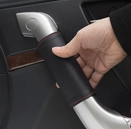 Kapı İç Kol Koruyucu Deri Kılıf Kapı Kolu Dekorasyon Ve Koruma (2 Adet) ITHAL SUNİ DERİ CIRTLI (SİYAH-KIRMIZI DİKİŞ)