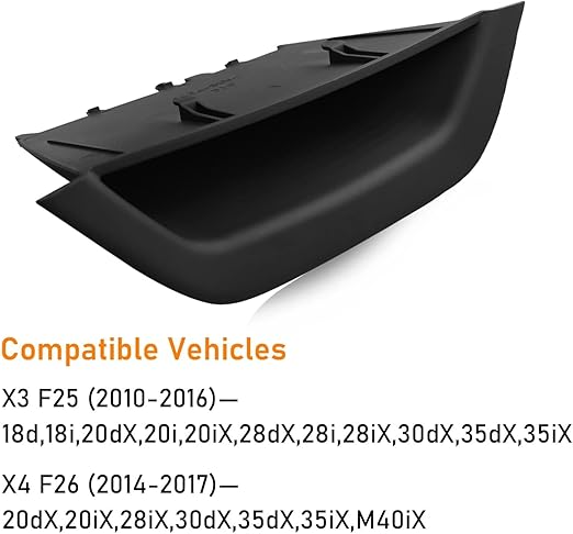 【Uyumlu Araçlar】Araba kapı kolu saklama kutusu X3 Serisi (F25 2010-2016) ve X4 Serisi (F26 2014-2017) ile uyumludur. Paket İçeriği: 1 ADET Araba Kapı Kolu Düzenleyici X3/X4. Uygun modellerle ilgili diğer ayrıntılar ürün açıklamasında yer almaktadır. Lütfen sipariş vermeden önce aracınızın modelini kontrol edin.