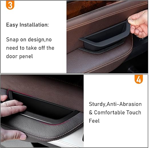 Kolay takılır ve temizlenir: Bu kapı konteyneri saklama kutusu kapağı x3 x 4, orijinalinin yerini mükemmel şekilde alabilir. Kapı Kolu Depolama Tepsisi Organizatörümüz, kurulumu kolay olacak şekilde orijinal verilere göre kalıplanmıştır. Bu kapı kolu kapağı, orijinal kapı kolu kolçaklarınızın yapışkan kısmını kapatmak için kullanılır ve kurulum kesme veya ekleme gerektirmez. Temizlik gelince, götürmek ve yıkamak olabilir.