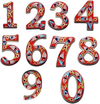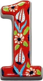 Kapı numarası seramik lale desenli çeşitli renklerde (1, Kırmızı)
