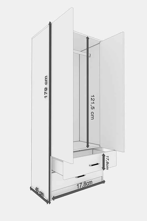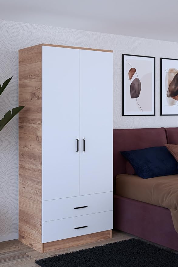 2 Kapılı 2 Çekmeceli Gardırop / Atlantik Çam-Beyaz