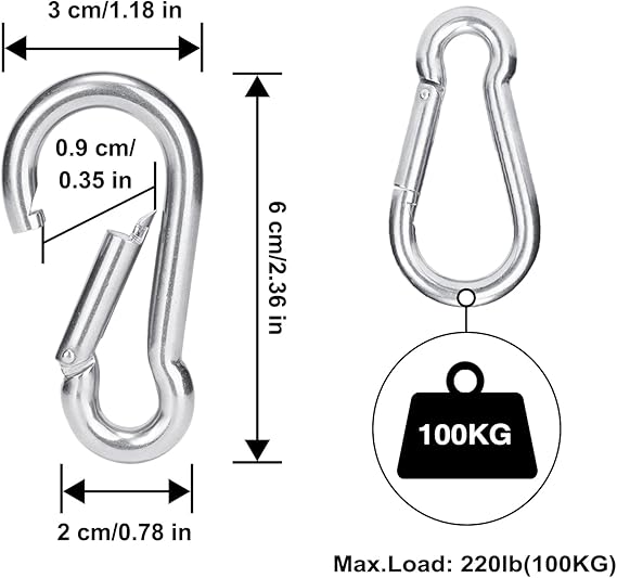 4 adet karabina kanca: Paslanmaz çelikten oluşur, paslanmaz, güçlü ve uzun ömürlüdür.