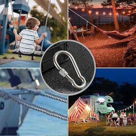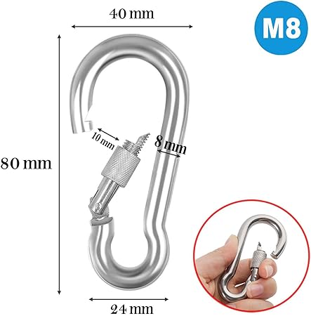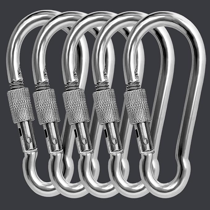 Karabina Kilitli 8 MM Yaylı Kanca Paslanmaz Çelik Kilit Tırmanma Olta Kamp Ekipmanları Hamak Anahtar Askı Kilidi 5 ADET