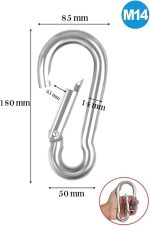 karabina paslanmaz çelik 12 x 140 mm (2 ADET) büyük karabina kanca paslanmaz çelik taşıma kapasitesi 800 kg/1600 lb, kanca karabina kamp salıncak – 140 mm x φ12 mm