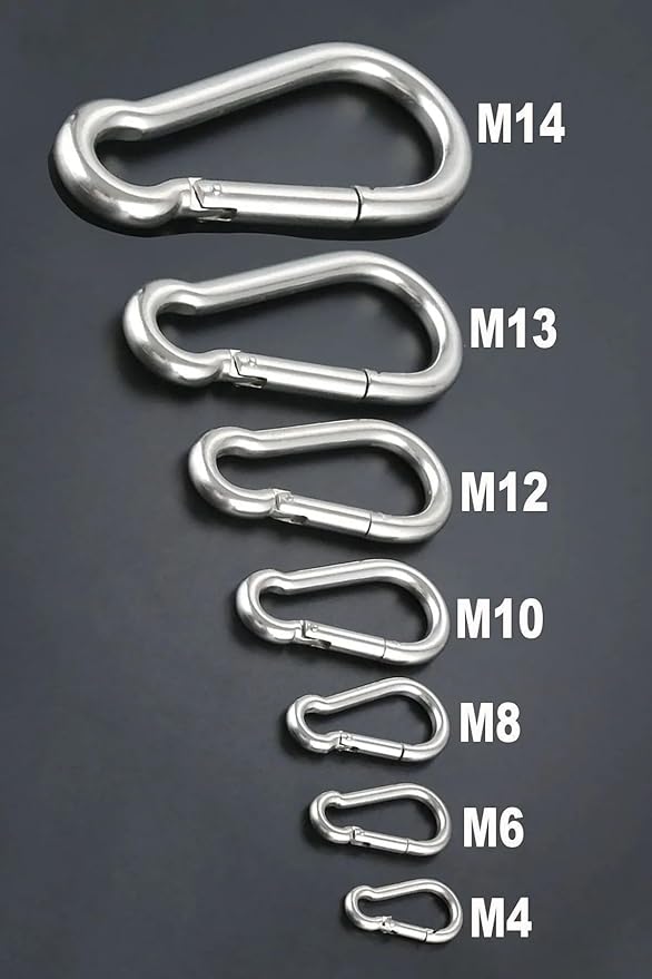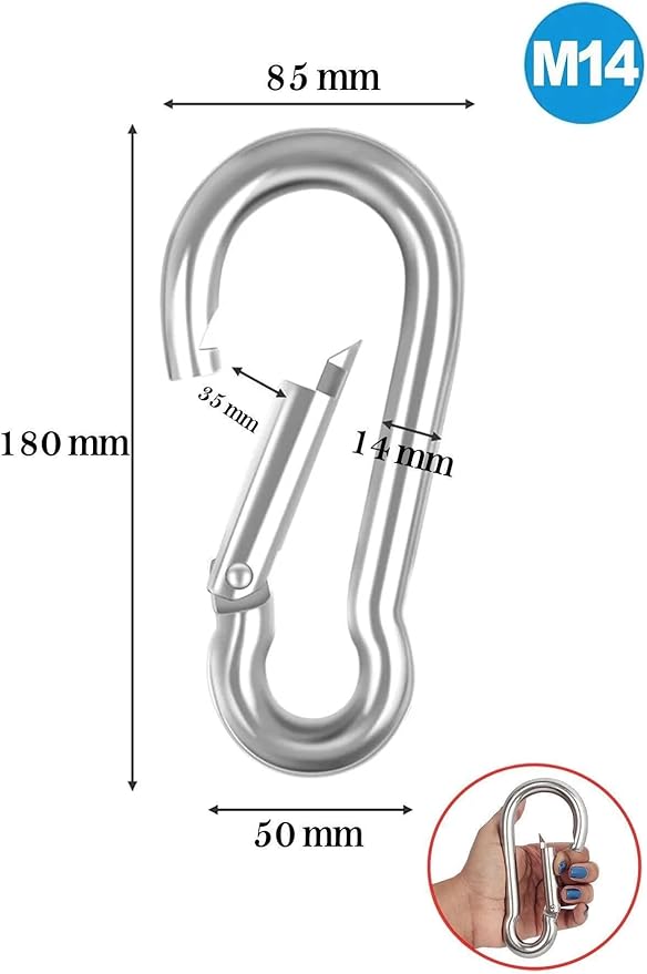 karabina paslanmaz çelik 12 x 140 mm (2 ADET) büyük karabina kanca paslanmaz çelik taşıma kapasitesi 800 kg/1600 lb, kanca karabina kamp salıncak – 140 mm x φ12 mm