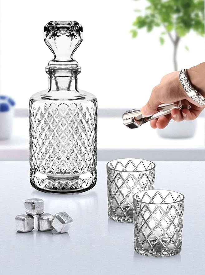 Karaf Sürahi Ve 2’li 300 ml Bardak Seti Su Meşrubat Viski Şişesi 1200 ml