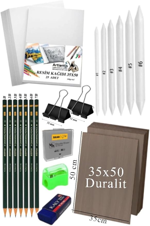 Karakalem Eskiz Çizim Seti Durolit Seti 35×50 cm 1 Paket Pastel Dağıtıcı Kalem Resim Kağıdı Dereceli Kalem Seti Hamur Silgi Sınav Silgisi