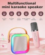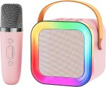 Karaoke Makinesi Bluetooth Hoparlörlü – Kablosuz Mikrofonlu Taşınabilir Çocuk Karaoke Cihazı, LED Işıklı Ses Değiştirici, Doğum Günü ve Parti Oyuncağı (Pembe)