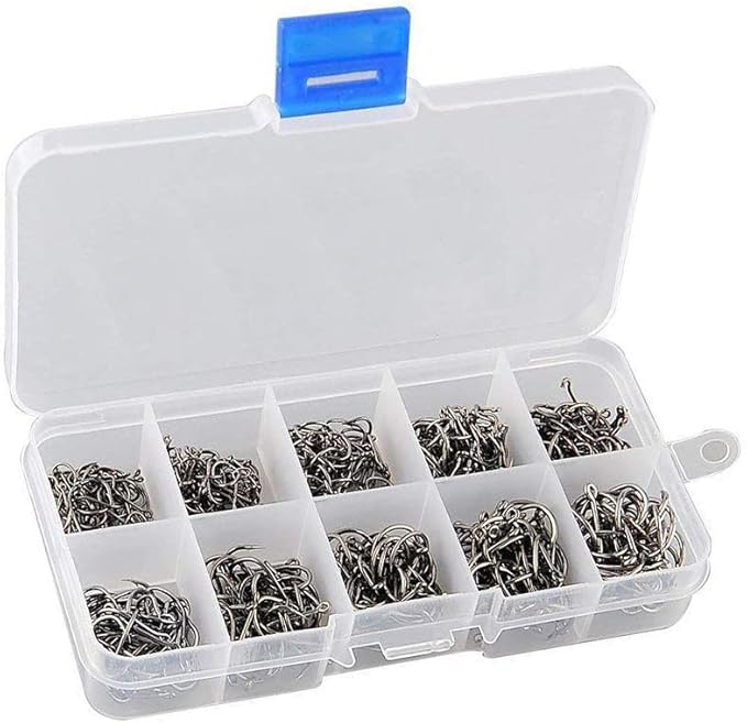 Karbon çelik sazan olta kancası, plastik kutulu yem kancası (500 adet/10 farklı boyutta 3# -12#)