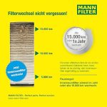 Yüksek kaliteli, aktif karbonlu MANN-FILTER kabin filtresi, polen, dizel kurumu ve lastik aşınması gibi parçacıklara ve ayrıca zararlı gazlara ve hoş olmayan kokulara karşı da etkin koruma sağlar.