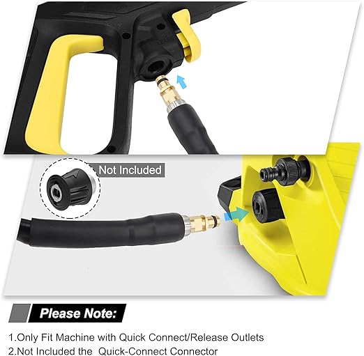 burada hortum tabancaya bağlanır ve basınçlı yıkayıcı hızlı konektöre bağlanır. Tigger tabancanızın sarı bir düğmeye (siyah değil) sahip olması gerekir