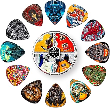 【Sanatsal Seçim 24 Paket】Birinci sınıf çeşitli modern tasarıma sahip gitar seçimi, 24 sanat resmi benzersiz zevkinizi temsil eder, çeşitli iyiliklere veya çeşitli şarkı stillerine uyar. Ve elektro gitar pensleri Desenler günlük kullanım sırasında kolayca aşınmaz.