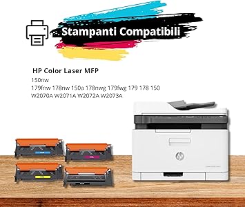 Toner Kartuşları HP Color Laser 150nw MFP 179fnw 178nw 150a 178nwg 179fwg 179 178 150 W2070A W2071A W2072A W2073A Yazıcı ile Uyumlu (Siyah Camgöbeği Sarı Macenta 4 adet Paket)