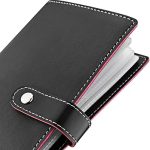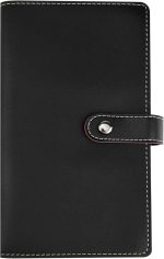 Sade tasarım: Kart düzenleyici, sert suni deri dış kılıf ve döner çıtçıt kilitli.