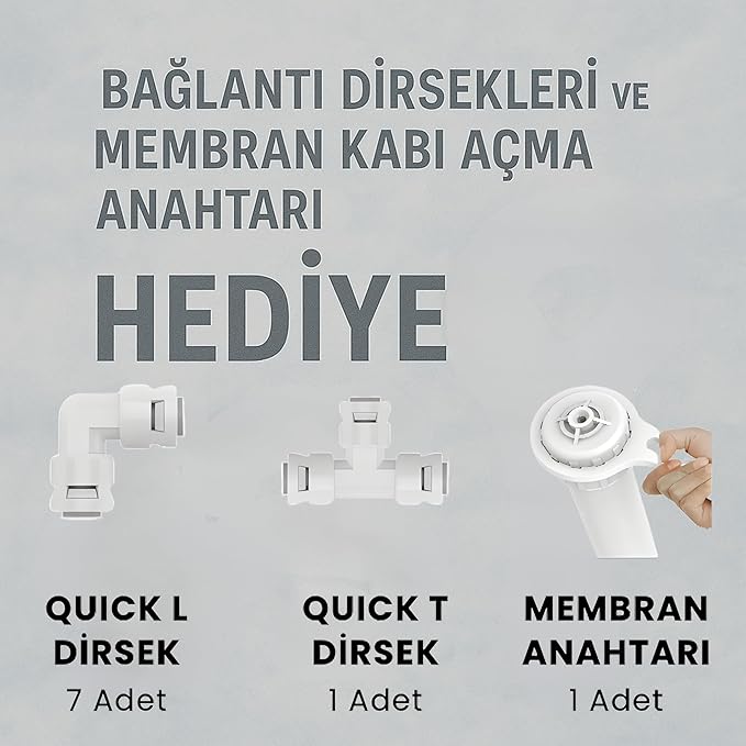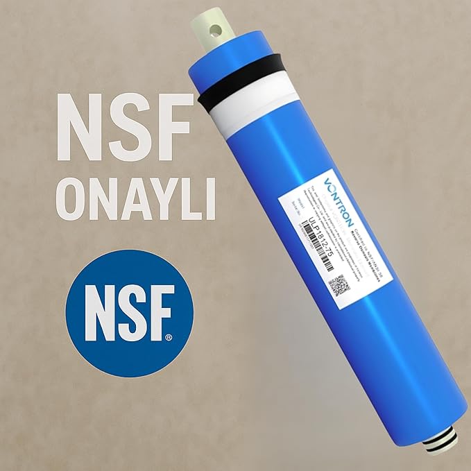 Vontron Membran Filtre: Arsenik, kurşun, bakır, baryum, krom, cıva, sodyum, kadmiyum, florür, nitrit, ve selenyum, bakteri ve virüsleri atık bölümünden dışarı atar %100 güvenli içme suyu verir. Ön filtrelerinizin periyodik bakımı yapılırsa membran filtrenizin ömrü uzar. NSF onaylı Vontron membranın Orjinal olduğunu üstünde bulunan QR kodunu cep telefonunuzdan okutarak kontrol edebilirsiniz.