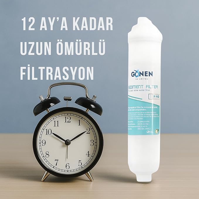 Sediment Filtre: filtrede suda askıda kalan pas, kum, çamur, tortu gibi kaba pislikleri 5 mikron boyutuna kadar temizler. %100 polipropilen malzemeden üretilmiştir. Değişim süresi; 8-10 ay aralığındadır.