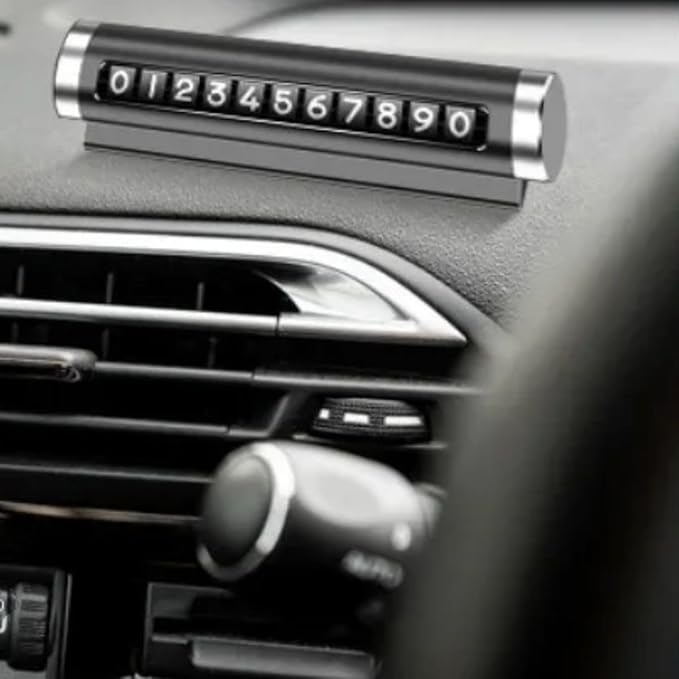 Alüminyum Kasa Siyah Renk Çevirmeli Araç İçi Telefon Numaratörü Park Oto Numaratörü, şık ve işlevsel tasarımı ile aracınız park halindeyken iletişim bilgilerinizi kolayca sergilemenizi sağlar. Siyah renkli alüminyum kasası ve çevirmeli numaratörü ile modern ve estetik bir görünüm sunar.