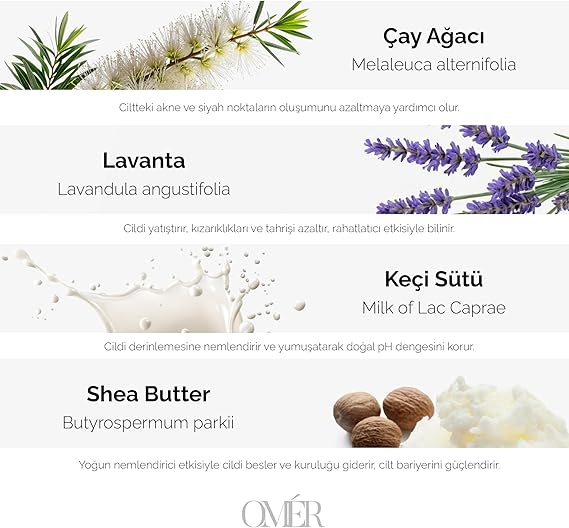 Keçi sütü sabunu yüz Özel seçilmiş bileşenleriyle | Biyolojik olarak parçalanabilir | Kadınlar, erkekler, çocuklar, hamile kadınlar | El sabunu, nemlendirici vücut sütü, yüz peelingi | Keçi sütü, içerdiği proteinler sayesinde ciltteki siyah noktaları gidererek cildin daha sağlıklı görünmesine yardımcı olur. A vitamini zenginliği nedeniyle cilt yapısının onarılmasına, peeling etkisi elde edilmesine, cilt gözeneklerinin sıkılaşmasına ve cildinizin pürüzsüzleşmesine yardımcı olur. daha genç görünmeye izin ver
