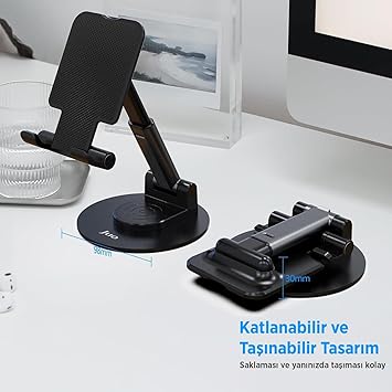 Katlanabilir 360 Derece Dönen Masaüstü Telefon Standı Siyah