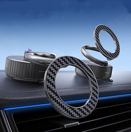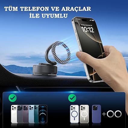 Metal Katlanabilir Karbon Fiber Magsafe Mıknatıslı Araç Telefon Tutucu 360° Dönebilir Kilitli Vakum