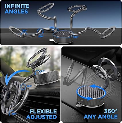 Katlanabilir Karbon Fiber Magsafe ile Uyumlu Mıknatıslı Araç Telefon Tutucu 360° Dönebilir Kilitli Vakum