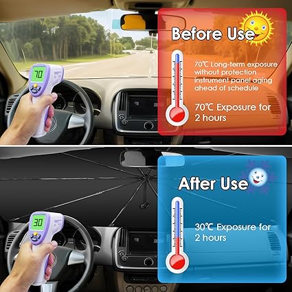 Mükemmel güneş koruması: Araç güneşliği ön camı, ultra ince nano yansıtıcı buz kristali malzemeden ve UV ve güneş koruma fonksiyonları sunan ve arabadaki sıcaklığı en iyi seviyeye düşüren 210T gümüş peptit kaplamadan oluşur. Yenilikçi teknolojilerin kombine etkisi zararlı güneş ışığının ve UV ışınlarının %99’undan fazlasını bloke eder ve mükemmel yalıtım ve çift koruma sağlar. Bu yazın en iyi hediyesidir!